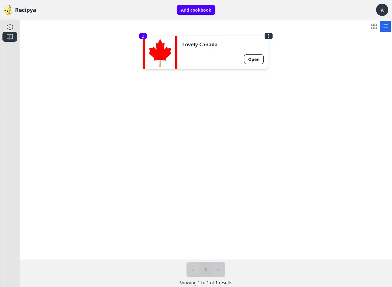 The cookbooks can be displayed in the following modes: