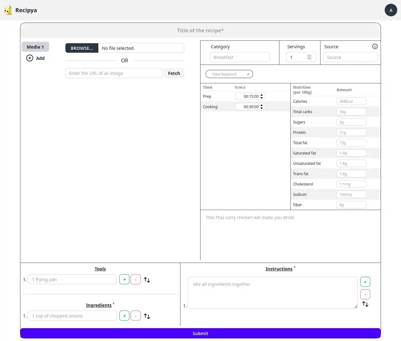 La méthode la plus simple pour saisir une recette consiste à remplir un formulaire décrivant votre plat.